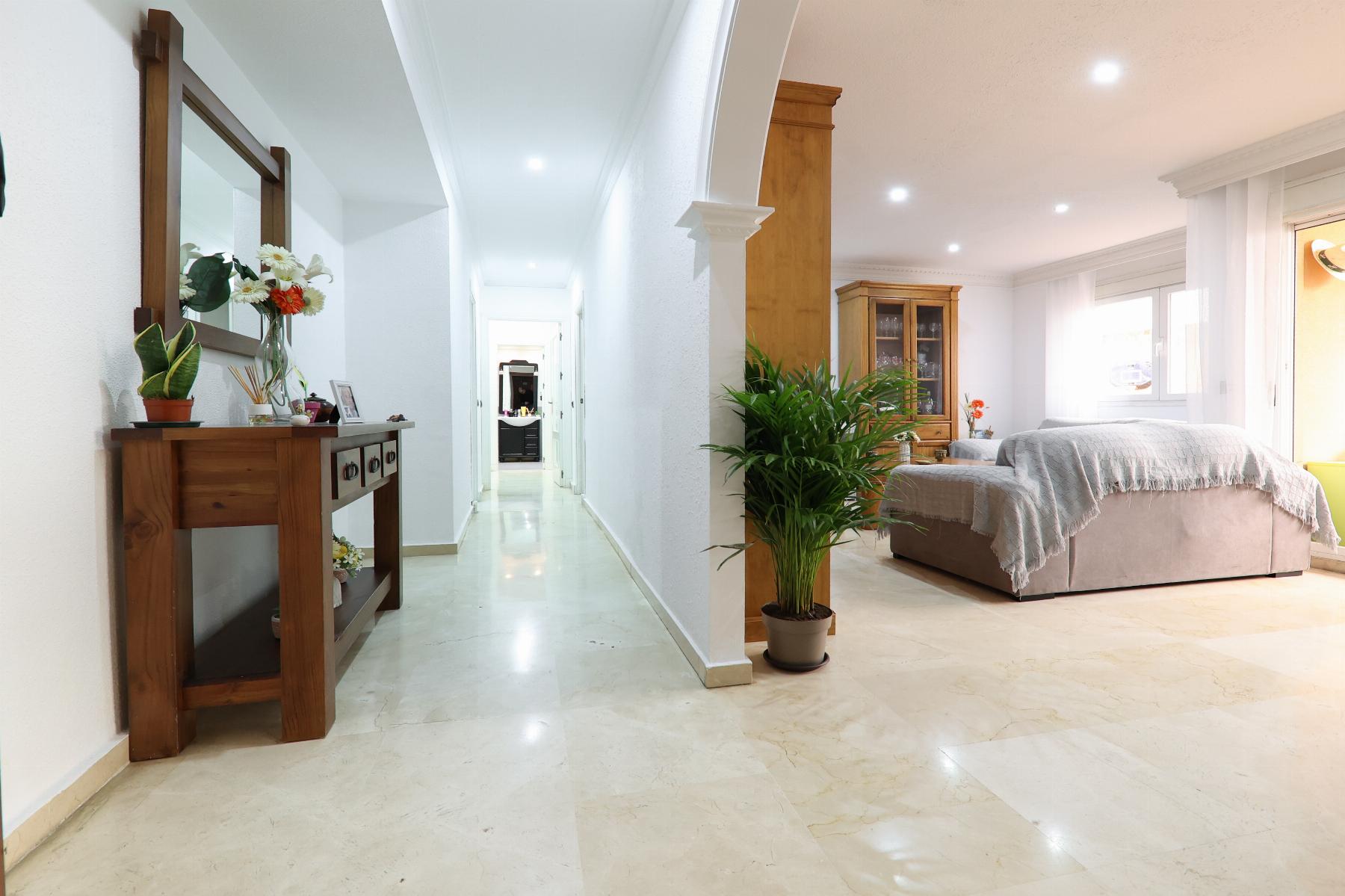 Espectacular piso de 2 dormitorios y 2 baños, con una enorme terraza-patio de 48m², la terraza es absolutamente espectacular, ideal para jugar los niños, para mascotas o para disfrutar de una terraza como si fuera un chalet adosado, La terraza esta dividida en varios ambientes, con su caseta para que puedas organizar todos los juguetes de los niños o todo lo que quieras, entramos por un recibidor amplio que da a un espacioso salon comedor con acceso a la espectacular terraza y junto a la cocina que esta muy bien amueblada en estilo rustico, con su lavadero independiente, luego seguimos por el pasillo con acceso a un cuarto de baño completo y un dormitorio también amplio, un poco mas adelante tenemos la suite con su baño privado y su zona privada de armario que da al dormitorios también con un amplio espacio.